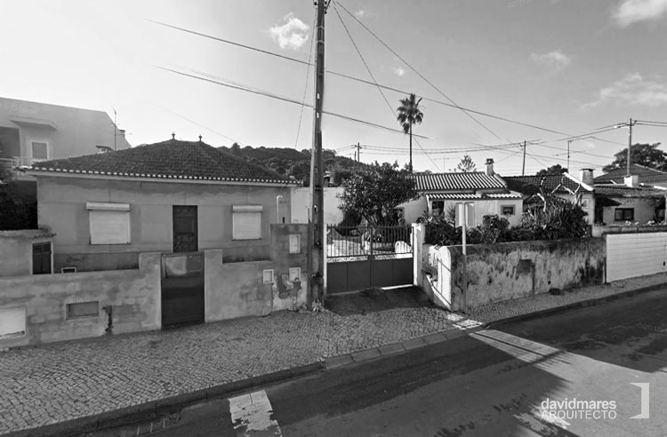 O existente, uma modesta moradia construída por volta da década de 50 pelo avô do actual proprietário e cliente, que apresenta o seu interior já em fase de demolições. No seu tardoz, uma instalação sanitária e um pequeno hall, construídos à posteriori, e uma vasta área de alpendre. O lote apresenta um ligeiro declive de norte para sul e diversos anexos que poderão vir a ser objecto de remodelação no futuro.